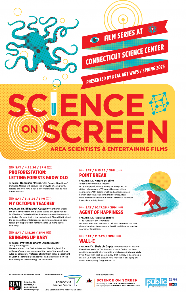 Real Art Ways brings the world of science alive, pairing critically acclaimed films with a discussion led by area scientists. These great thinkers (and researchers) extrapolate on the themes of a chosen film in an engaging conversation crafted to stimulate the mind.